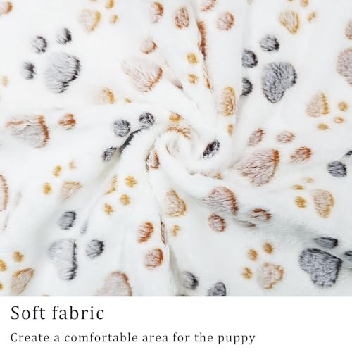 1 Pack 3 Blankets Super Soft Fluffy Premium Fleece Pet Blanket Flannel Paw Printed Throw for Dog Puppy Cat (Small 23×16”, Brown, Pink, White)