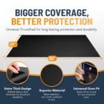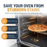 - SUPERIOR QUALITY: Withstands up to 500°F and is 100% BPA Free and PFOA Free. Each oven floor protector liner is made from a durable, heat-resistant coating, reinforced with fiberglass fabric. Each pack comes with 2 oven liners measuring 17” by 25”, with a thickness of 0.2mm, providing you with an extra-thick durable product that covers your entire bottom oven. Easily cut to size using scissors to fit your oven