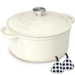 Enameled Cast Iron Dutch Oven - Umite Chef 5QT Pot with Lid & Cotton Potholders - Heavy-Duty Cookware for Bread Baking, Braising, Stews, Roasting(Cream White)