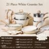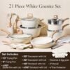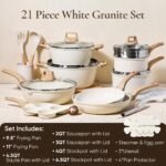 CAROTE 21Pcs Pots and Pans Set, Nonstick Cookware Sets, White Granite Induction Cookware Non Stick Cooking Set w/Frying Pans & Saucepans(PFOS, PFOA Free)