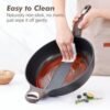 - EASY TO CLEAN – The nonstick surface and no rivets design make the non toxic frying pan with lid easy to clean in seconds with a towel, soap and warm water. Recommend hand wash to extend the non stick surface life.