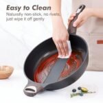 - EASY TO CLEAN - The nonstick surface and no rivets design make the non toxic frying pan with lid easy to clean in seconds with a towel, soap and warm water. Recommend hand wash to extend the non stick surface life.