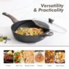 - MULTIFUNCTIONAL PAN – This deep skillet offers a variety of cooking options such as sautéing, stir-frying, searing, boiling, simmering, blanching, braising, deep-frying, stewing. One pan can be used in multiple ways.