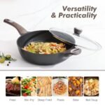 - INDUCTION COMPATIBLE - The nonstick deep frying pan is made of heavy-duty cast aluminum that won't warp. Its induction base is suitable for all stovetops, including induction cooktop, and it heats fast and evenly.