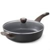- SUPER NONSTICK – The surface of the saute pan with lid is smooth and super nonstick, pancakes just slide right off the pan effortless. Only less oil is needed for cooking, for a healthy, low-fat diet.