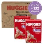 Huggies Size 5 Diapers, Little Movers Baby Diapers, Size 5 (27+ lbs), 132 Count (2 Packs of 66), Packaging May Vary