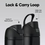 - Protective push-to-open lid keeps spout clean; convenient carry loop doubles as a lock