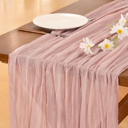 Socomi Pink Cheesecloth Table Runner Easter Spring Boho Rustic Gauze Dusty Pink Farmhouse 120 inch 10FT Cheese Cloth Runner for Wedding Party Baby …