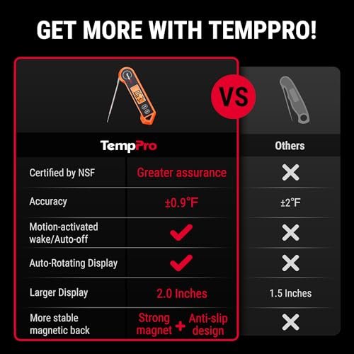 TempPro TP19H Digital Meat Thermometer for Cooking with Ambidextrous Backlit and Motion Sensing Kitchen Cooking Food Thermometer for BBQ Grill Smoker Oil Fry Candy Instant Read (Previously ThermoPro)