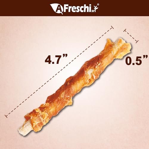 A Freschi srl Turkey Tendons for Dogs, USA-Sourced, Healthy Dog Treats, Rawhide-Free Puppy Chews, All Natural, Hypoallergenic Dog Treats, Turkey Tendon Wrapped Brown Rice Stick, 3.5 oz Pack