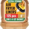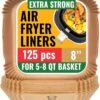 - NATURAL UNBLEACHED ASSURANCE – Use our unbleached, natural paper liners for air fryer basket for confident cooking. Keep your food pure and safe with these brown parchment liners, ensuring a clean, healthy meal.