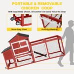 Aivituvin Chicken Coop for Outdoor – Poultry Cage with Wheels, Nesting Box, Leakproof Pull-on Tray, and Asphalt Waterproof Roof – Red