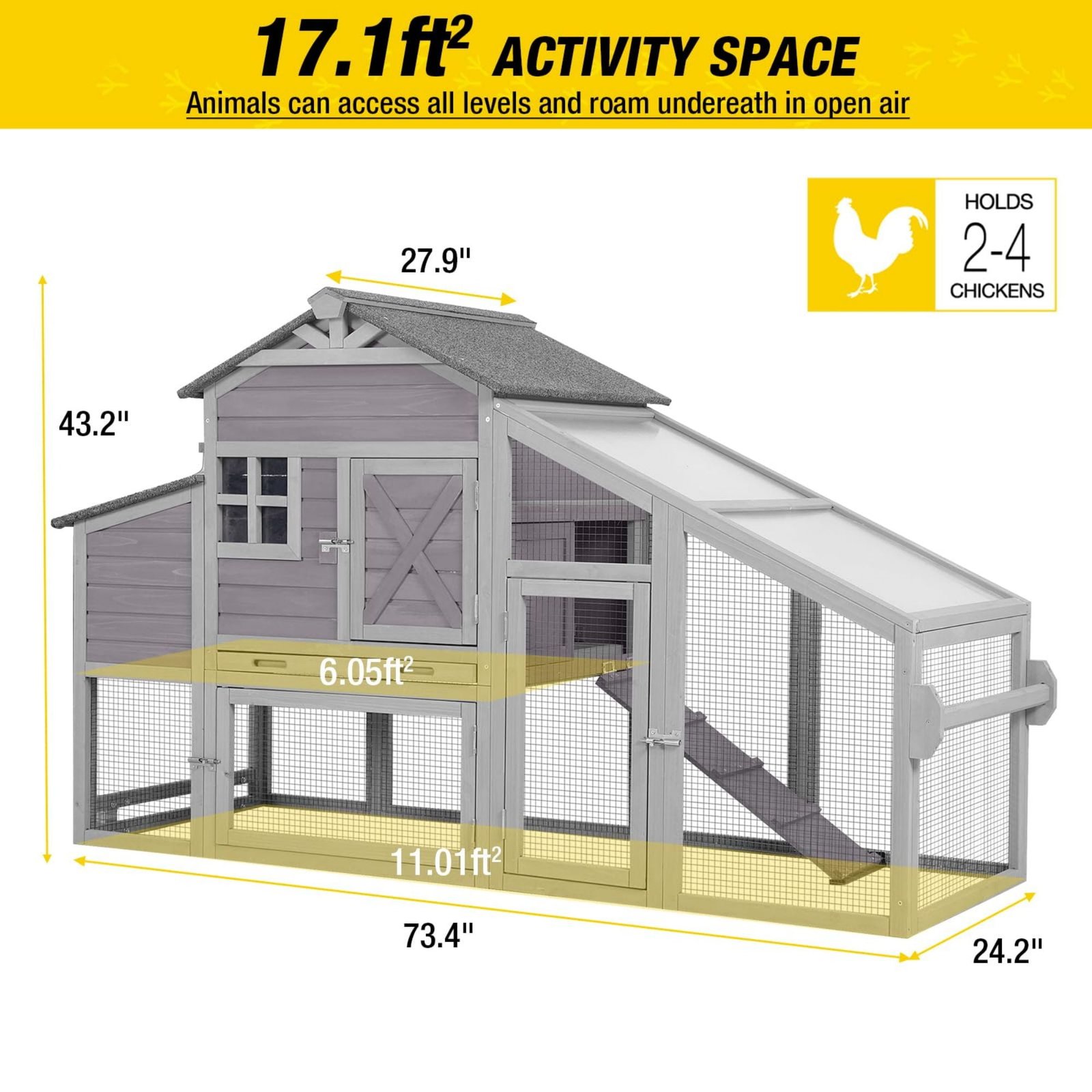 heavy-duty galvanized wire mesh and metal spring latch can great protect your poultry, the steel pole of sliding doors keeps roosters and ducks locked up safely at coop