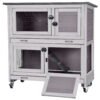This rabbit hutch is made of safe natural fir-wood which is durable and long-lasting. The rabbit hutch is designed for convenience and safety with four sturdy metal wheels, two of which have brakes for secure placement. It features two deeper, no-leak trays with wooden baffles to prevent spills, simplifying cleaning. A hinged trap door separates the upstairs and downstairs areas, offering flexibility for different pets or separate bunny care. The hutch includes seven access doors and a ramp for easy movement and maintenance. It also pairs with our pet playpen, ensuring a secure and versatile indoor-outdoor space for your pets. 🐰【Easy Movement】Four stronger metal wheels to easily move the rabbit hutch and quickly. Two are brakes to fix well and keep safe 🐰【Leakproof Plastic Tray】This rabbit cage provides a spacious space for rabbits to play and live, the indoor rabbit hutch can accommodate 2~4 rabbits together at the same time, the top apartment with waterproof composite asphalt roof can shelter the rabbits from the wind and rain, this bunny house will be a paradise for rabbits. 🟡FEATURE: 🔸This rabbit hutch uses quality-selected natural fir wood, which is strongerresistant to cracking and moisture, odorless, and friendly to rabbits. 🔸The rabbit hutch activity space with four opening doors and a ramp for rabbits to enter and exit, up and down. 🔸Two removable bottom trays of the rabbit hutch for easy to clean. 🔸The pitched asphalt roof is waterproof and rain proof, removable wheels at the bottom facilitate movement. 🟢SPECIFICATIONS: 🐇Color:Gray 🐇Material:Wood 🐇Size:36″L x 17.7″W x 36.4″H 🐇Item Weight: 39 lbs