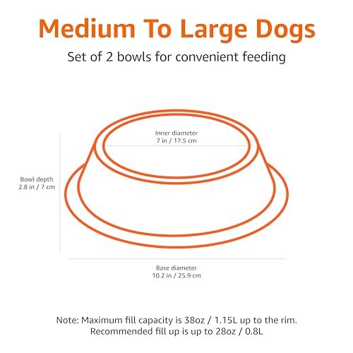 **Introducing Amazon Basics Stainless Steel Non-Skid Dog Water And Food Bowls, Dishwasher Safe, Rust Resistant, 38oz Capacity, 10 x 2.8 Inches, 2-Pack**