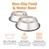 **Durable Construction**: Our stainless steel dog bowls are built to last, featuring a rust-resistant design that withstands scratches and corrosion. The non-slip base ensures the bowls stay in place, even when your pet gets excited about mealtime.
