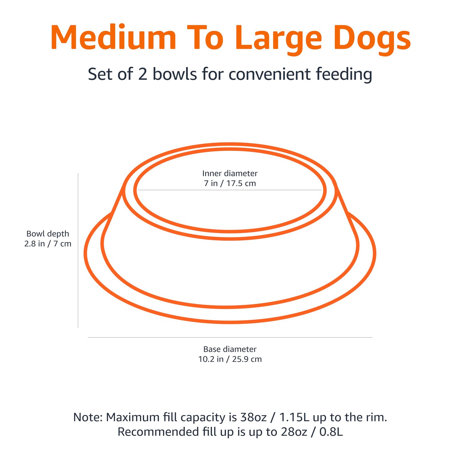 **Convenient Size**: With a capacity of 38oz, these bowls provide ample space for your pet’s meals and snacks. The compact size (10 x 2.8 inches) makes them easy to store in your kitchen or take on-the-go.