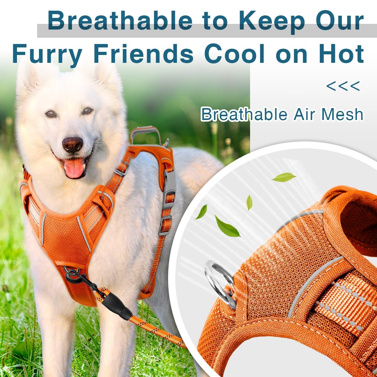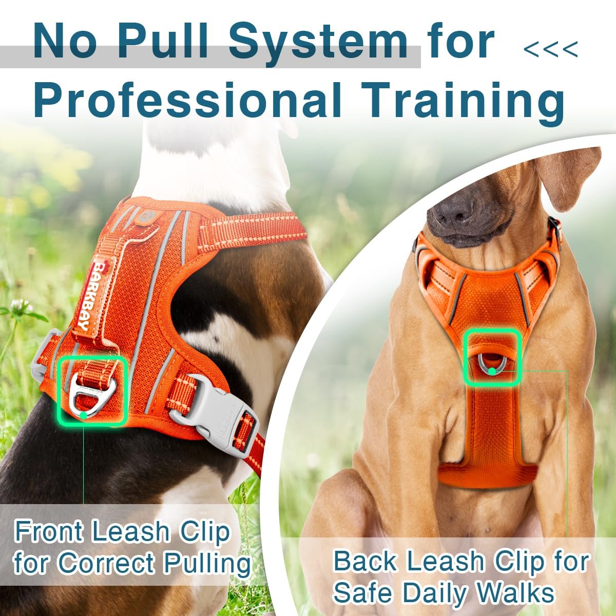 BARKBAY Dog Harness No Pull with ID Tag Pocket – Heavy Duty, Reflective, Easy Control for Large Dogs(Orange,L)