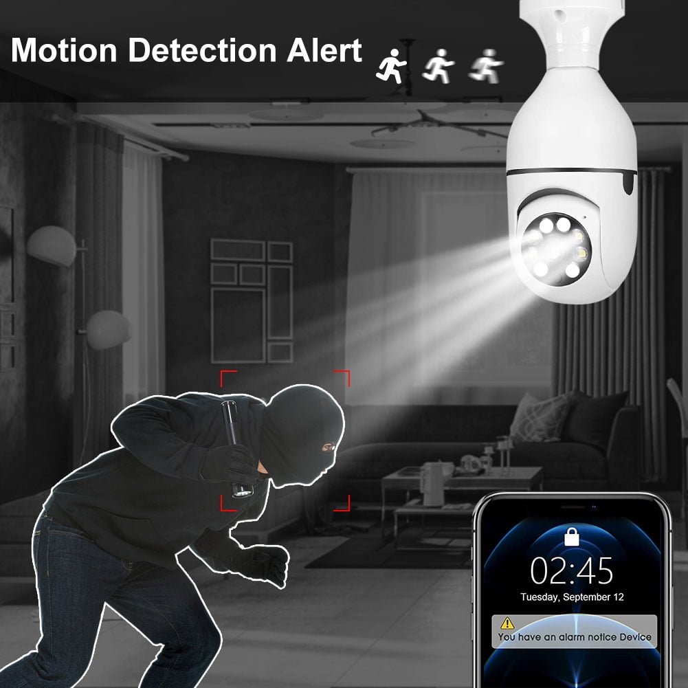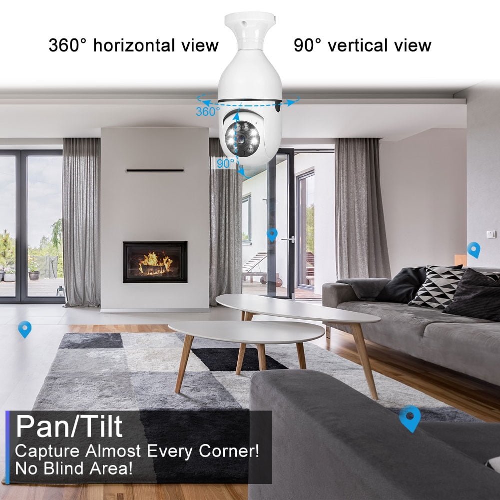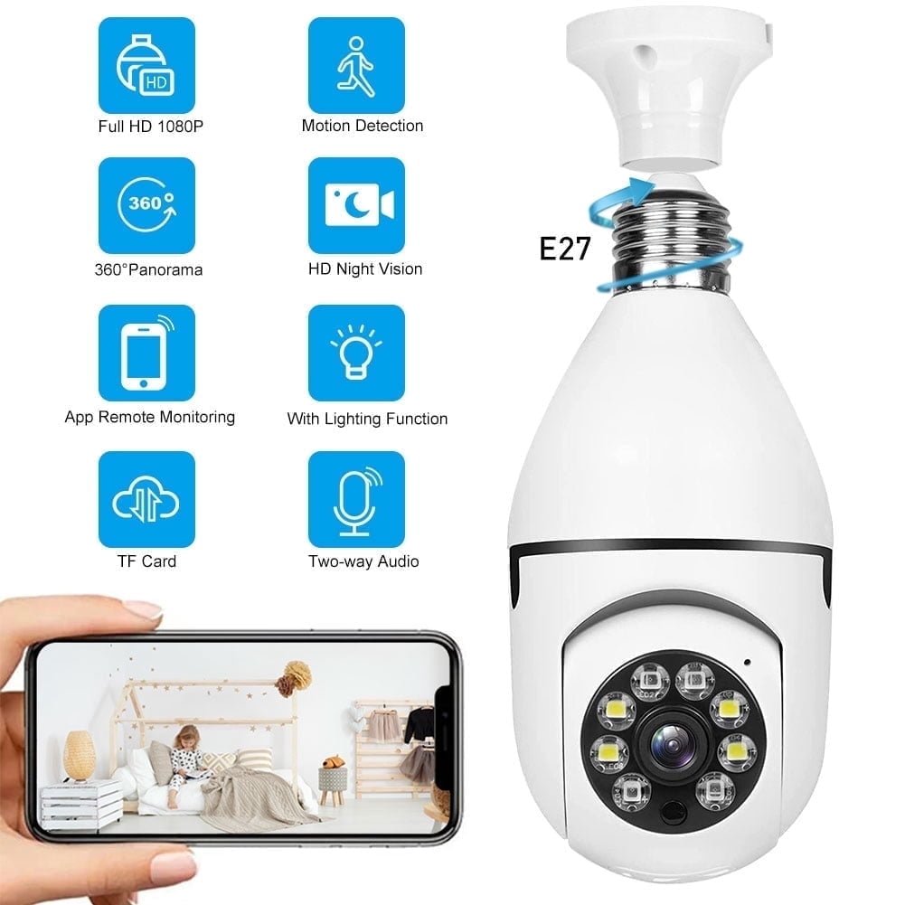 BCOOSS Home Security Camera Wireless WIFI Outdoor Surveillance Camera with Light Bulb 1080 HD Motion Detection 360 Degree Wide Angle