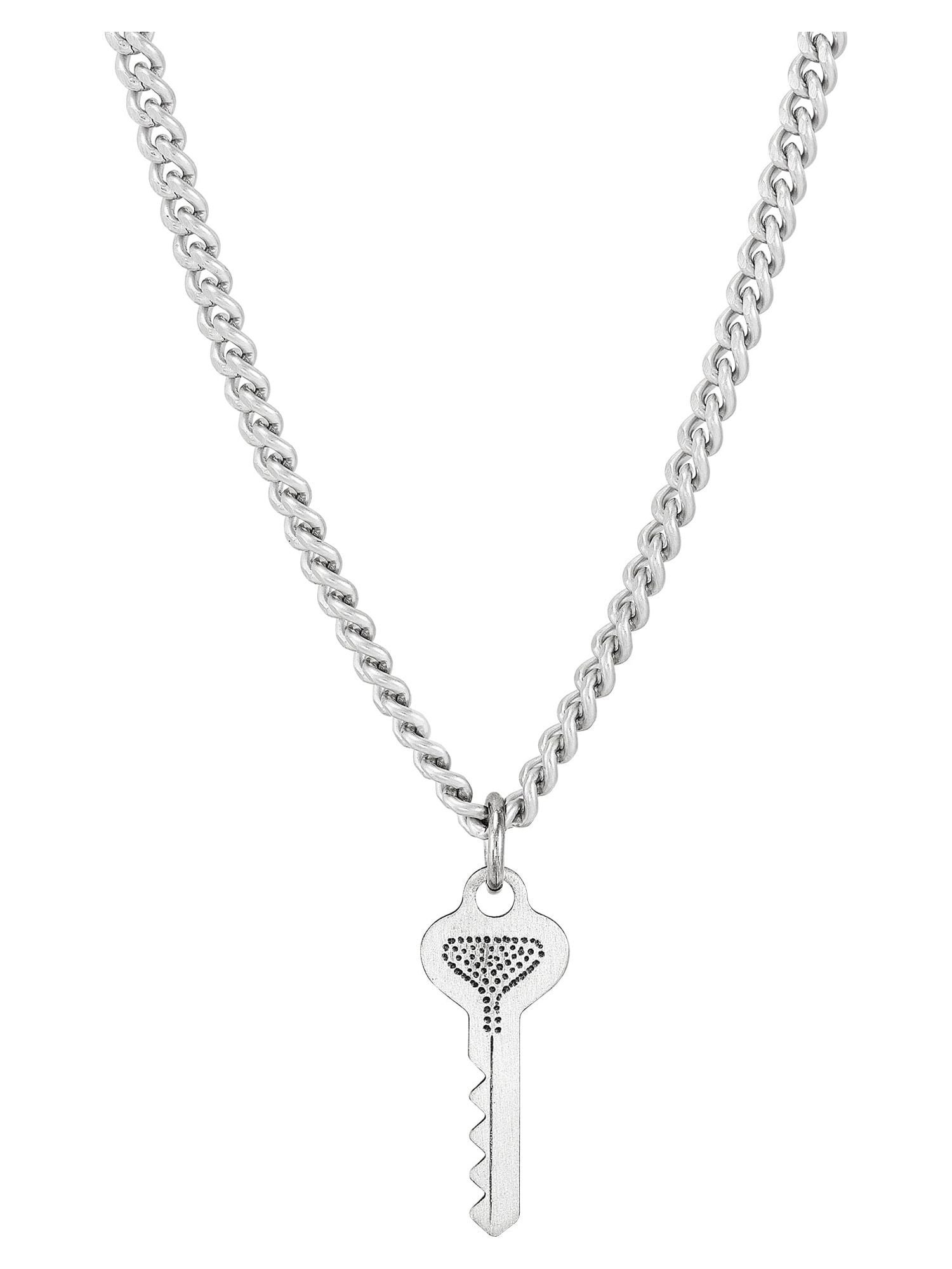 Created in Sterling Silver on Stainless Steel: Inscribed heart with key pendant set