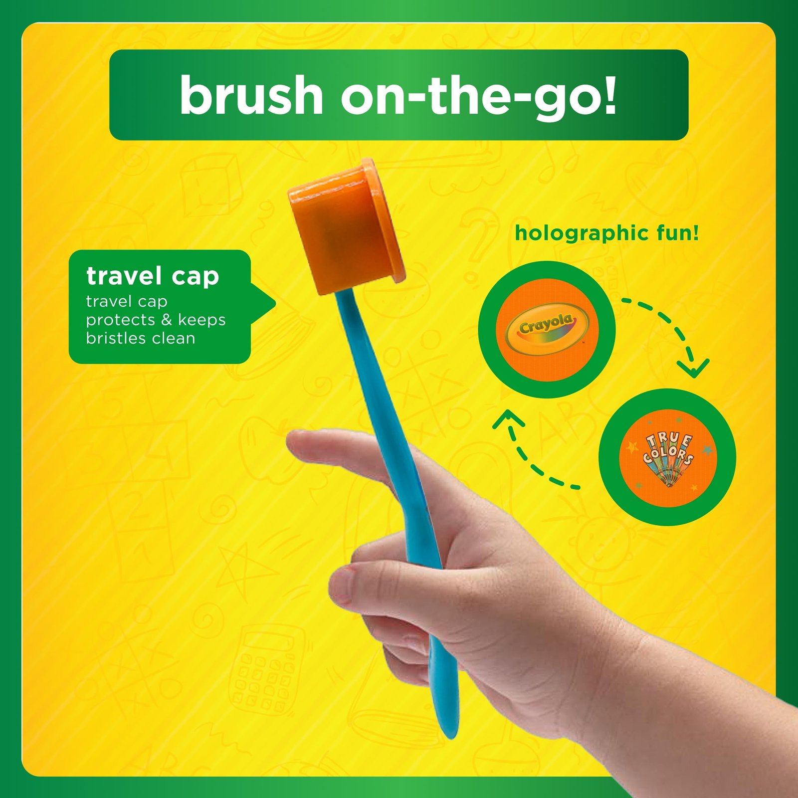 It’s never too early to inspire creativity and a love for learning with the Brush Buddies Crayola Manual Toothbrush Set! Each set includes a colorful soft bristle toothbrush, a fun toothbrush cap, and a vibrant rinse cup. Make your little one’s mornings and evenings exciting with our playful designs inspired by the classic Crayola box to spark imagination. Each toothbrush features a small, rounded brush head and a textured ergonomic handle, ensuring a comfortable grip for little hands. The gentle bristles effectively clean while protecting sensitive gums and enamel, fostering good oral hygiene habits. The playful toothbrush cap keeps bristles clean for on-the-go adventures, while the included rinse cup makes brushing and rinsing fun. With Crayola, every brushing experience is a step towards learning and creativity! Recommended for toddlers ages 2+.