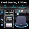- High-Performance Car Streaming Box – Equipped with Android 13.0, 8-core SM6225 processor, and 8GB+128GB storage for fast, smooth streaming.