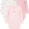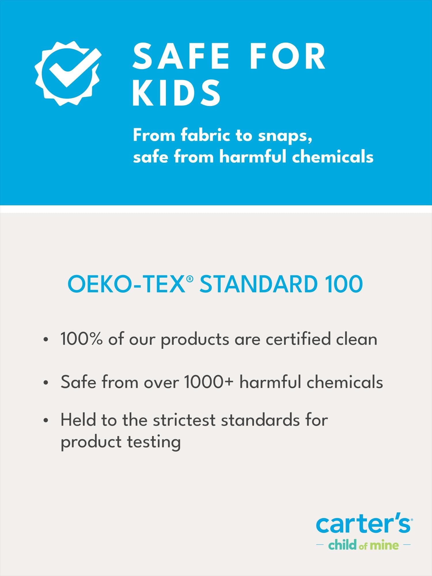 New baby? Then you don’t want to pass up this 3-pack bodysuit set from Carter’s Child of Mine. These long sleeve bodysuits for baby girl are the perfect everyday top for long days at home or early days on the go with your little one. Crafted with overlap shoulders and strong snaps at the legs, this multi-pack bodysuit set for baby girl is a parent’s dream for easy dressing and easy changes! Messes are inevitable with baby, so having stylish back up bodysuits that easily mix and match is a necessity! Pssst…this 3-pack bodysuit set is the perfect baby shower gift! Carter’s Child of Mine 3-pack bodysuit set is made with the same trusted quality as Carter’s and Standard 100 by OEKO-TEX, so it’s certified clean.