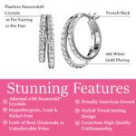 Cate & Chloe Corina 18k White Gold Plated 20mm Hoop Earrings Adorned with Swarovski® Crystals for Women. Add a refined touch to your ensemble with the Corina Hoop Earrings, featuring a dual-row front-facing design adorned with shimmering Swarovski® crystals. Plated in 18k white gold over a durable base metal, these hoops strike the perfect balance between elegance and everyday wear. The French back closure ensures a secure, comfortable fit, while the dual-band silhouette enhances sparkle and visual dimension. Lightweight and versatile, these earrings are ideal for both casual and formal occasions, making them a timeless addition to any jewelry collection.STUNNING DETAILSEARRING FEATURES – Crafted with 18k white gold-plated base metal, these hoop earrings for women feature a total of 52 accent Swarovski® crystals (26 per earring), each 1.5mm in size, meticulously set to enhance brilliance. With dimensions of 5mm (W) x 21.5mm (H) x 19mm (L), they offer a comfortable and elegant fit, secured with a French back closure for ease of wear.