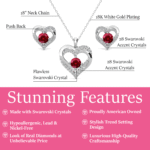Cate & Chloe Forever 18k White Gold Plated January Garnet Birthstone Necklace and Stud Earring Jewelry Set Adorned with Swarovski® Crystals for Women. Celebrate love and elegance with the Forever Birthstone Jewelry Set, a stunning collection designed for women who appreciate timeless beauty. Featuring a radiant double heart motif adorned with dazzling Swarovski® Crystals, including a deep red Garnet January birthstone, this exquisite set symbolizes passion and strength. Whether for everyday wear or special occasions, this jewelry set is the perfect way to showcase your unique style. A meaningful gift for birthdays, anniversaries, or any special moment, this set adds a touch of sophistication to any outfit.STUNNING DETAILSEARRING FEATURES – Crafted from 18k white gold plated brass, these elegant earrings for women feature a double heart design with 2 stunning 5.3mm Swarovski® center stones in a rich January Garnet hue and 56 delicate 1mm accent stones. Dimensions: 11.9mm (W) x 12.5mm (H) x 4.2mm (L). Designed with a secure push-back closure, these earrings offer comfort for all-day wear.