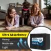 - 6-Layer Leakproof Protection You Can Trust Each pad features a six-layer design that absorbs liquid quickly and holds up to five cups to prevent overflow. The waterproof backing protects floors, carpets, and furniture from leaks, making these pee pads for dogs ideal for crates, playpens, feeding areas, and travel carriers. The durable construction resists tearing from scratching or pawing, helping ensure reliable performance for potty training or incontinence care.