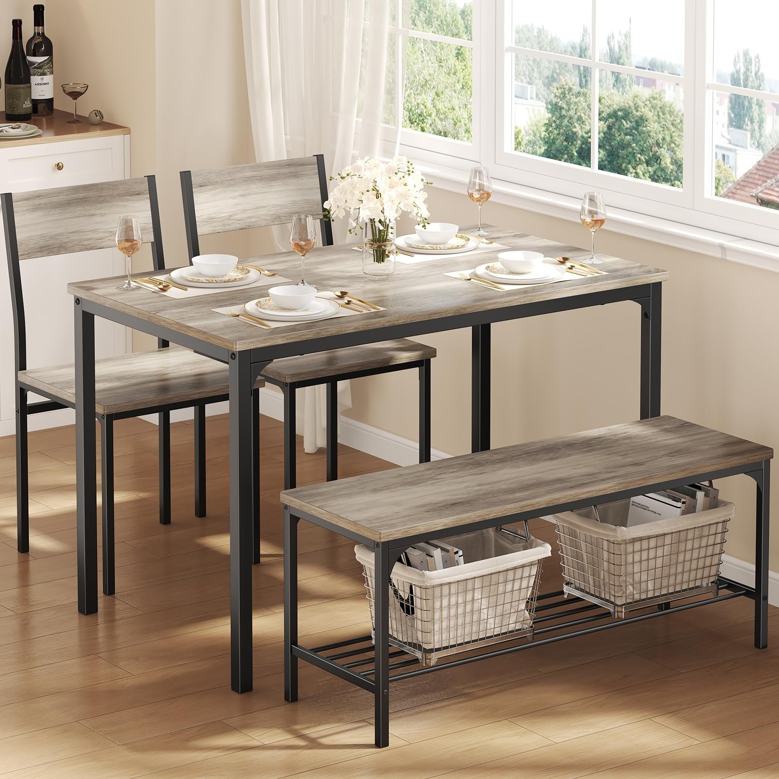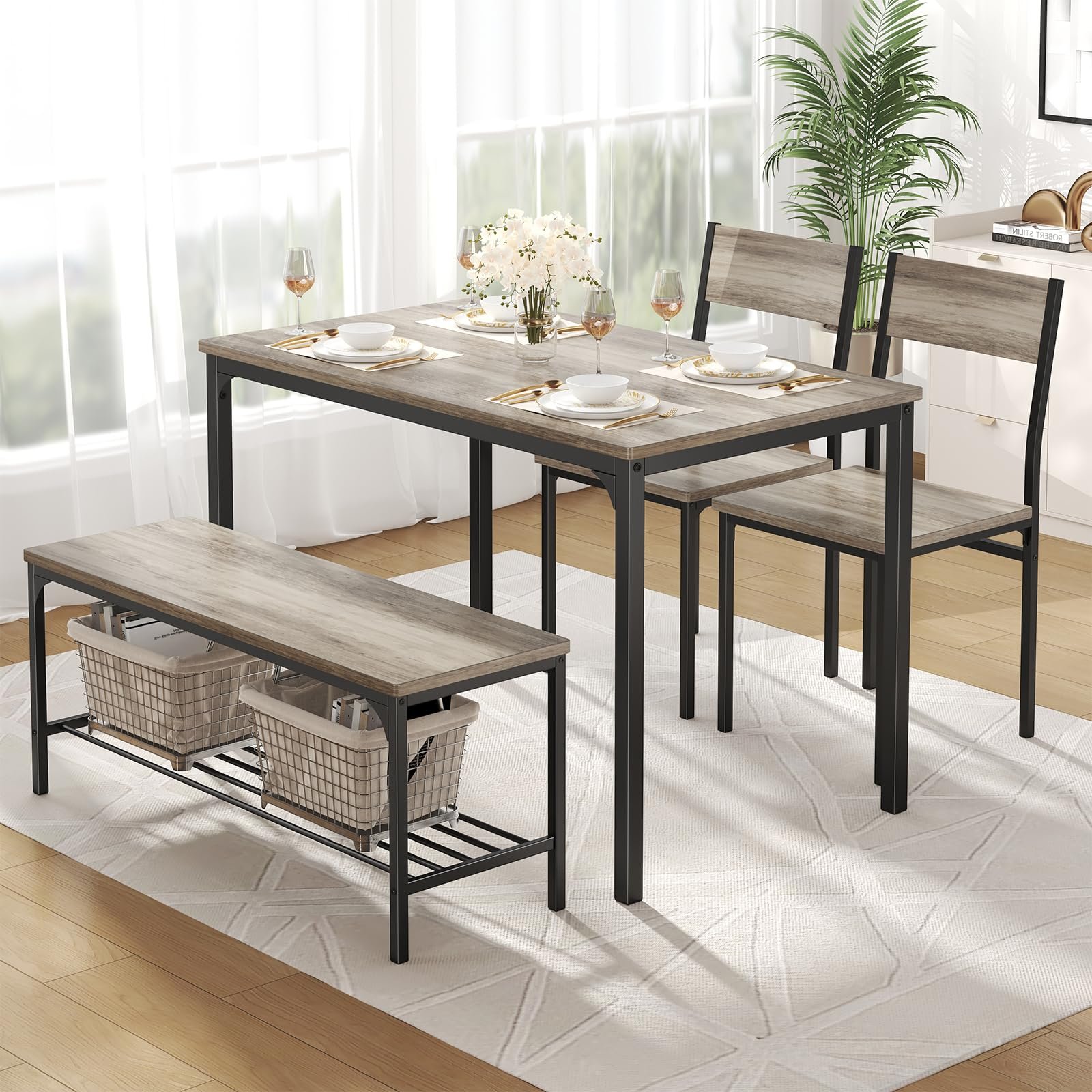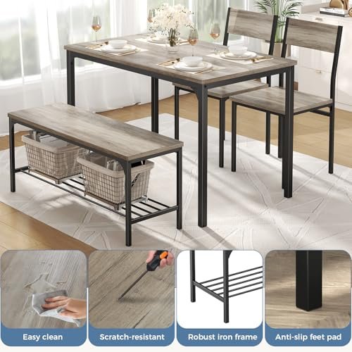 DUMOS Dining Table, Dining Table Set for 4 with Bench, Easy to Assemble Kitchen Table, Space-Saving Ideal 4-Person Set for Dining Room Kitchen Apar…