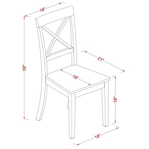 - PRODUCT DIMENSIONS: Sizes of the wonderful modern dining table is: Length: 42; Width: 42; Height: 29.5. The Proportions of the wonderful Wooden dining room chairs: Length: 21; Width: 18; Height: 38.