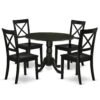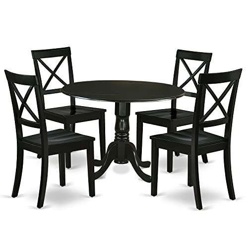 East West Furniture DLBO5-BLK-W 5 Piece Dinette Set for 4 Includes a Round Dining Room Table with Dropleaf and 4 Kitchen Dining Chairs, 42×42 Inch, Black