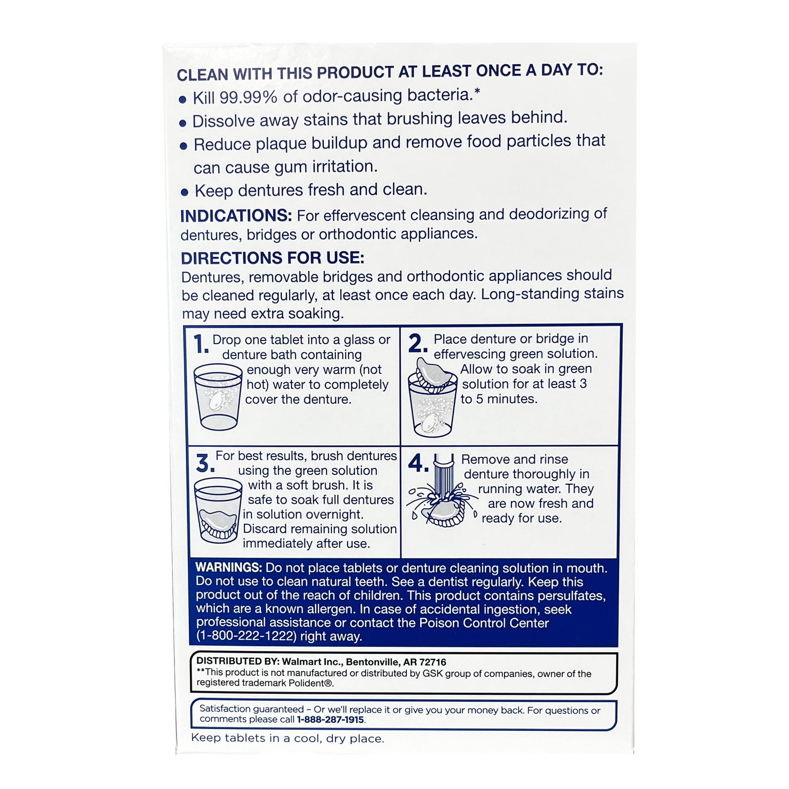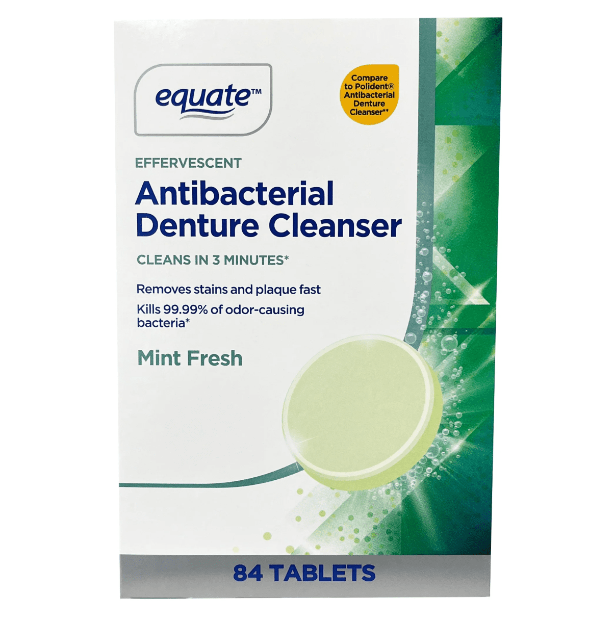 Equate Effervescent Antibacterial Denture Cleanser Tablets, Mint Fresh, 84 Count, Compare to Polident® Antibacterial Denture Cleanser