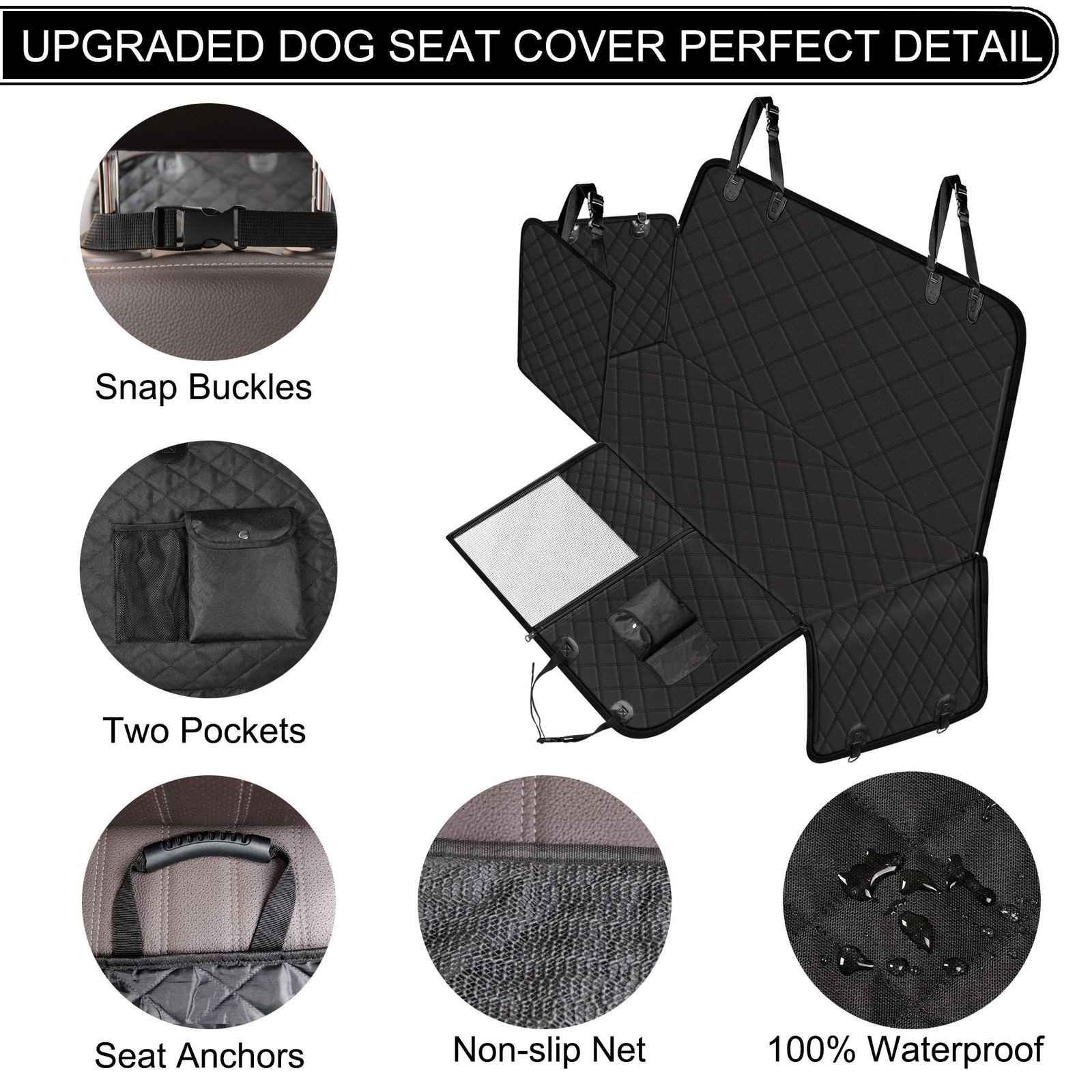 Femuar Dog Car Seat Cover with Storage Pockets – Waterproof & Scratchproof Back Seat Hammock for Pets