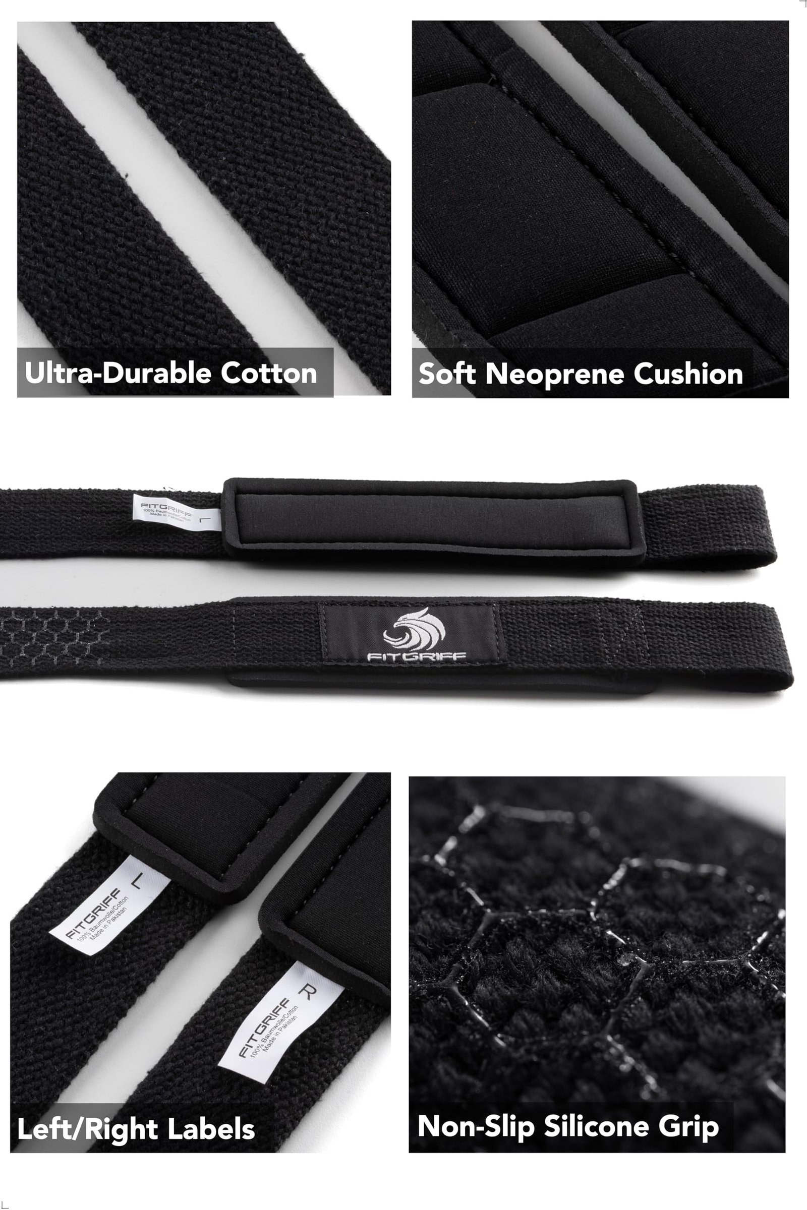 - SECURE & FOCUSED TRAINING – Our FITGRIFF lifting straps are the silent training partner for working out, deadlifting, heavy rowing, lat pulldowns, and pull-ups. Designed to distribute weight and reduce forearm fatigue, they keep your attention on muscle activation, not your grip.