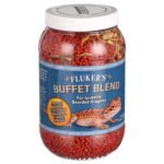 Buffet Blend for Juvenile Bearded Dragons is a combination of vitamin fortified pellets, freeze-dried crickets and freeze-dried mealworms. This unique blend ensures your pet will receive the proper balance of essential protein, fat, vitamins and minerals. Feeding Instructions: Bearded dragons, like us, need a certain amount of calories per day for health and vitality. Buffet Blend is scientifically formulated to meet these needs. Offer 5-9 pellets a day for small adults, and up to 28 pellets a day for large adults. You may increase or decrease the amount of pellets offered depending on the needs of your bearded dragon. Offer fresh food daily. Disinfect food and water bowls daily. Food can be moistened to help increase daily water consumption. Dietary diversity is important. We recommend supplementing this diet with live foods such as crickets and mealworms, and fresh greens (e.g., romaine lettuce) as desired. Store in a cool, dry place. No refrigeration necessary. Analysis: Crude Protein (not less than) 32%Crude Fat (not less than) 7.5%Crude Fiber (not more than) 6.5%Moisture (not more than) 9%Ash (not more than) 10.5%Calcium (not less than) 2.25%Phosphorus (not less than) 2%Vitamin D3 700 IU/kg.Flukers Buffet Blend For Juvenile Bearded Dragons