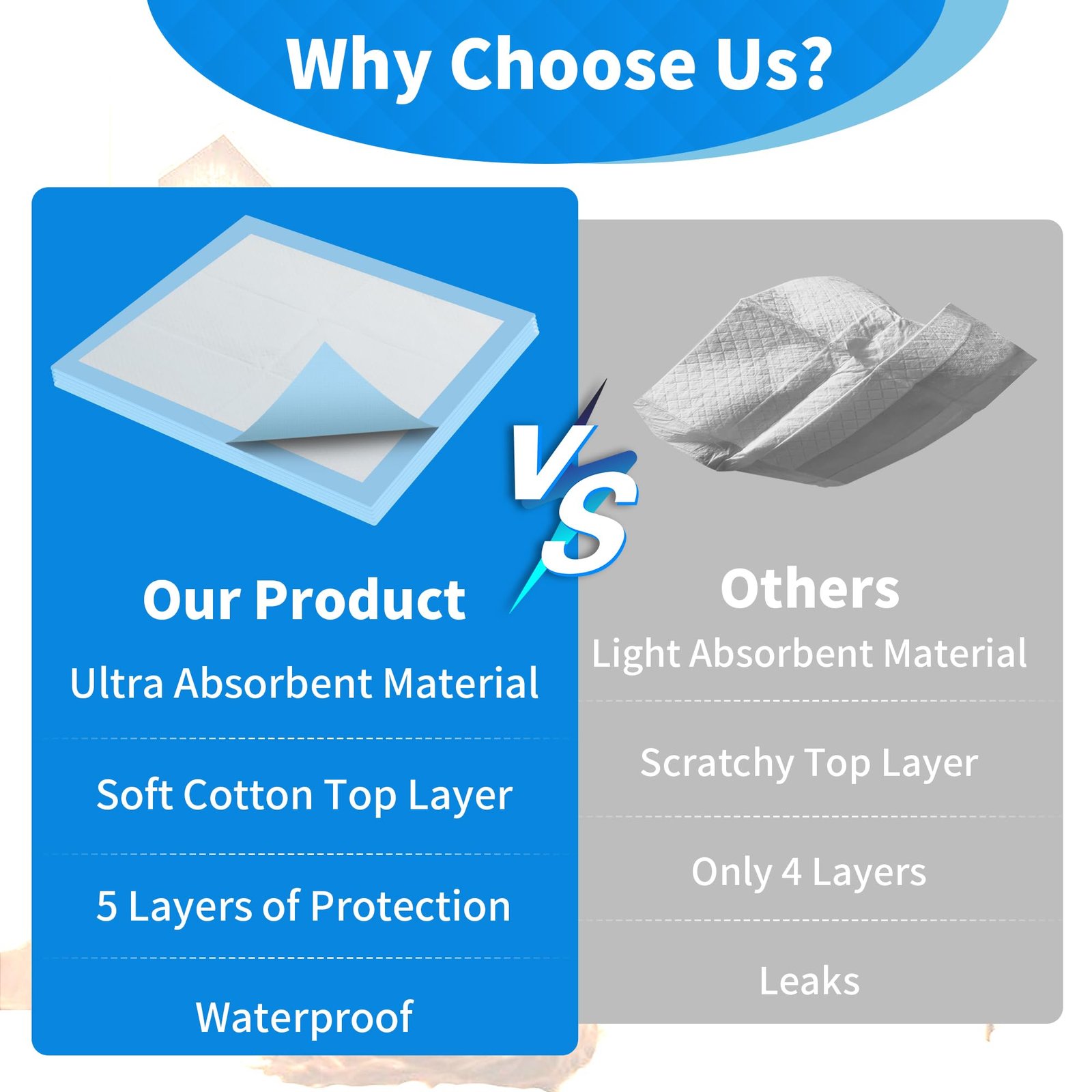 - Stay Dry for Many Uses – These disposable underpads aren’t just for older folks or kids who have trouble with accidents. Pet owners can use these chux too! They’re perfect for training puppies or keeping older dogs comfortable, ensuring everyone stays dry.