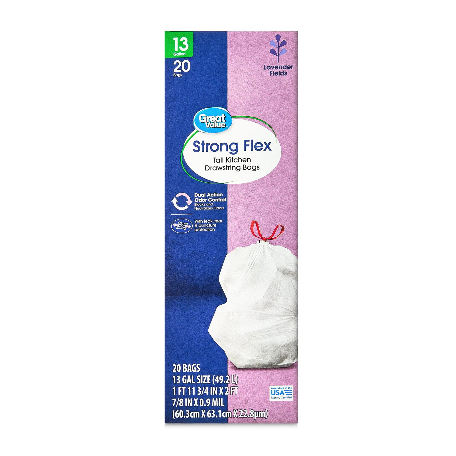 Great Value Strong Flex 13-Gallon Drawstring Tall Kitchen Trash Bags, Lavender Fields, 20 Bags