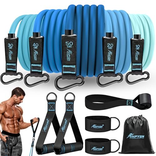 HPYGN Resistance Bands, Exercise Bands with Handles, Fitness Bands, Workout Bands with Door Anchor and Ankle Straps, for Heavy Resistance Training, Physical Therapy, Shape Body, Yoga, Home Workout Set