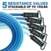 - 【perfect Workout Equipment】The resistance bands come with 5 different resistance level 10lbs, 20lbs, 30lbs, 40lbs and 50lbs in 5 different colors. You can use the bands independently or in any combination with a maximum resistance level of 150lbs.Whether you’re just starting out fitness or working out professionally, they’re the perfect home workout equipment.