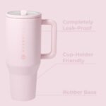 HydroJug Traveler - 32 oz Water Bottle with Handle & Flip Straw - Fits in Cup Holder, Leak Resistant Tumbler-Reusable Insulated Stainless Steel & Rubber Base - Gifts for Women & Men, Pink Sand