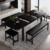 【Perfect for Small Spaces】 All benches and stools slide seamlessly under the table when not in use, maximizing space while maintaining aesthetics. It can also avoid accidental tripping when delivering food to the dining table, and provide more room for family activities