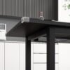 The extendable dining table is both minimalist and modern, blending seamlessly into any occasion.