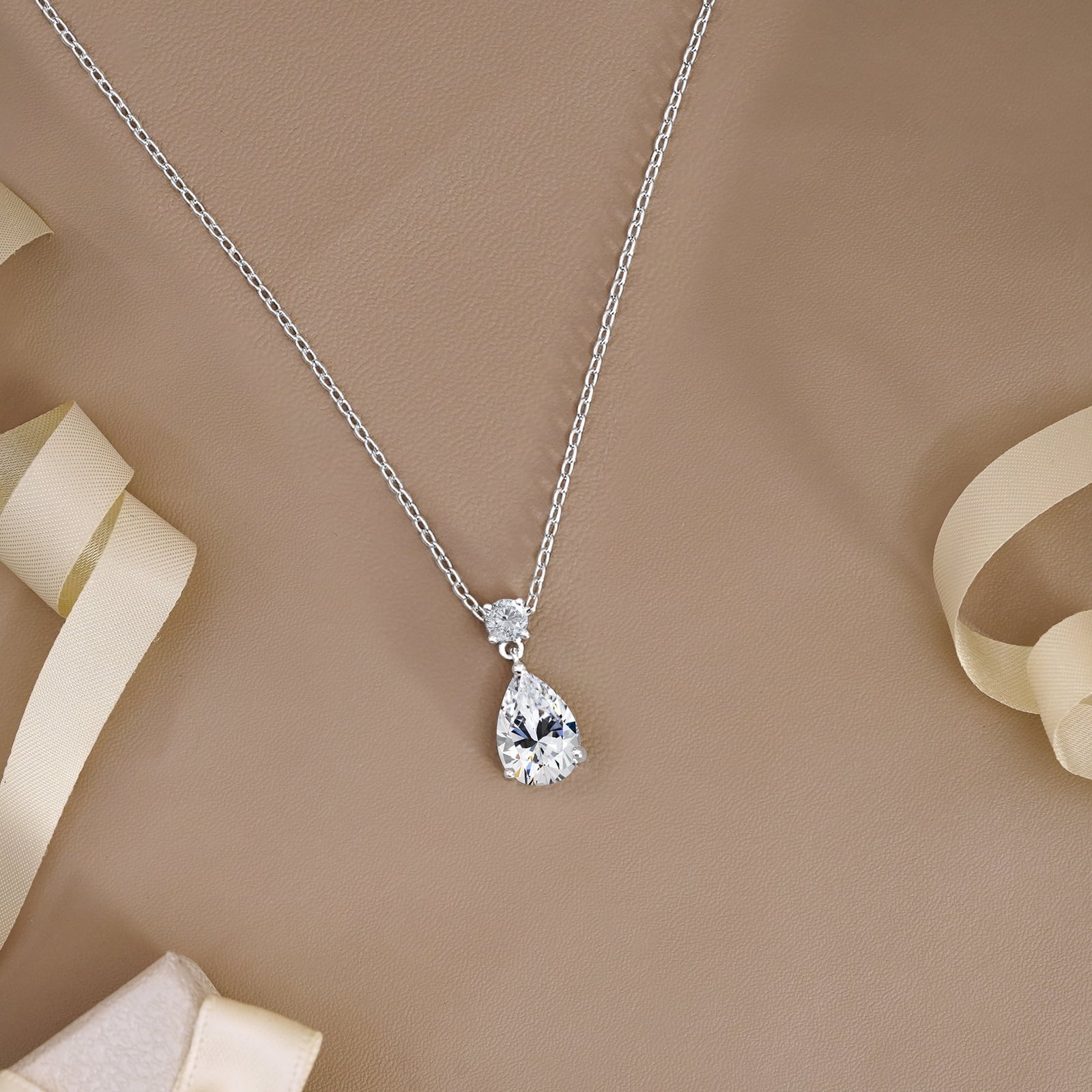 Start the greatest love story of your life with this JeenMata 3.25 Carat April Birthstone – Round and Pear Cut Dangle Pendant Necklace in 18k White Gold Plated for Women. It features a cubic zirconia with a weight of 3 carat, set in a three-prong setting, with 0.25 carat a sparkling cubic zirconia on top for extra shine. Made with 18k white gold plated metal, this necklace has a smooth, polished finish that looks stylish and classy. The delicate chain makes it perfect for both everyday wear and special occasions. This necklace is a great gift for birthdays, anniversaries, or any special moment. Its timeless design makes it a must-have for anyone who loves elegant jewelry. Let’s fulfill your love story with this classic solitaire pendant necklace and, surely, she will not regret it.