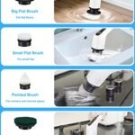Leebein Electric Spin Scrubber, Cordless Cleaning Brush with 8 Replaceable Brush Heads, Tub and Floor Tile 360 Power Scrubber Dual Speed with Adjustable & Detachable Handle for Bathroom Kitchen Car