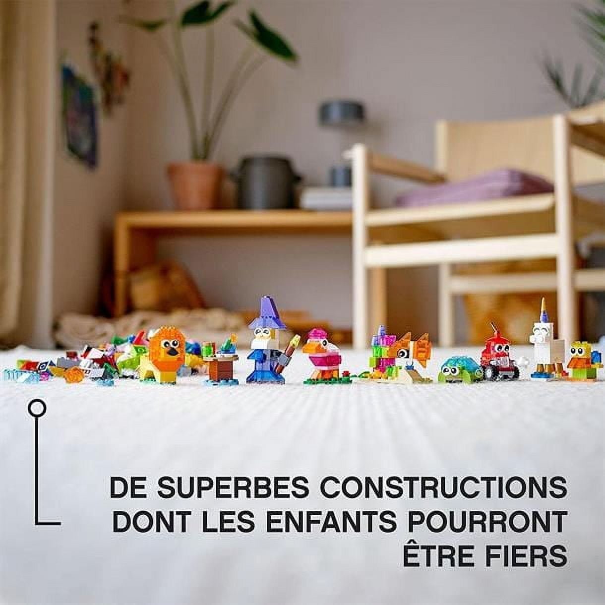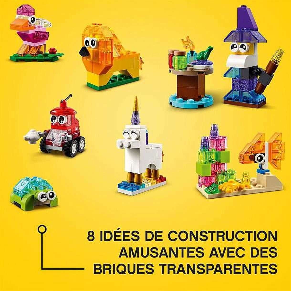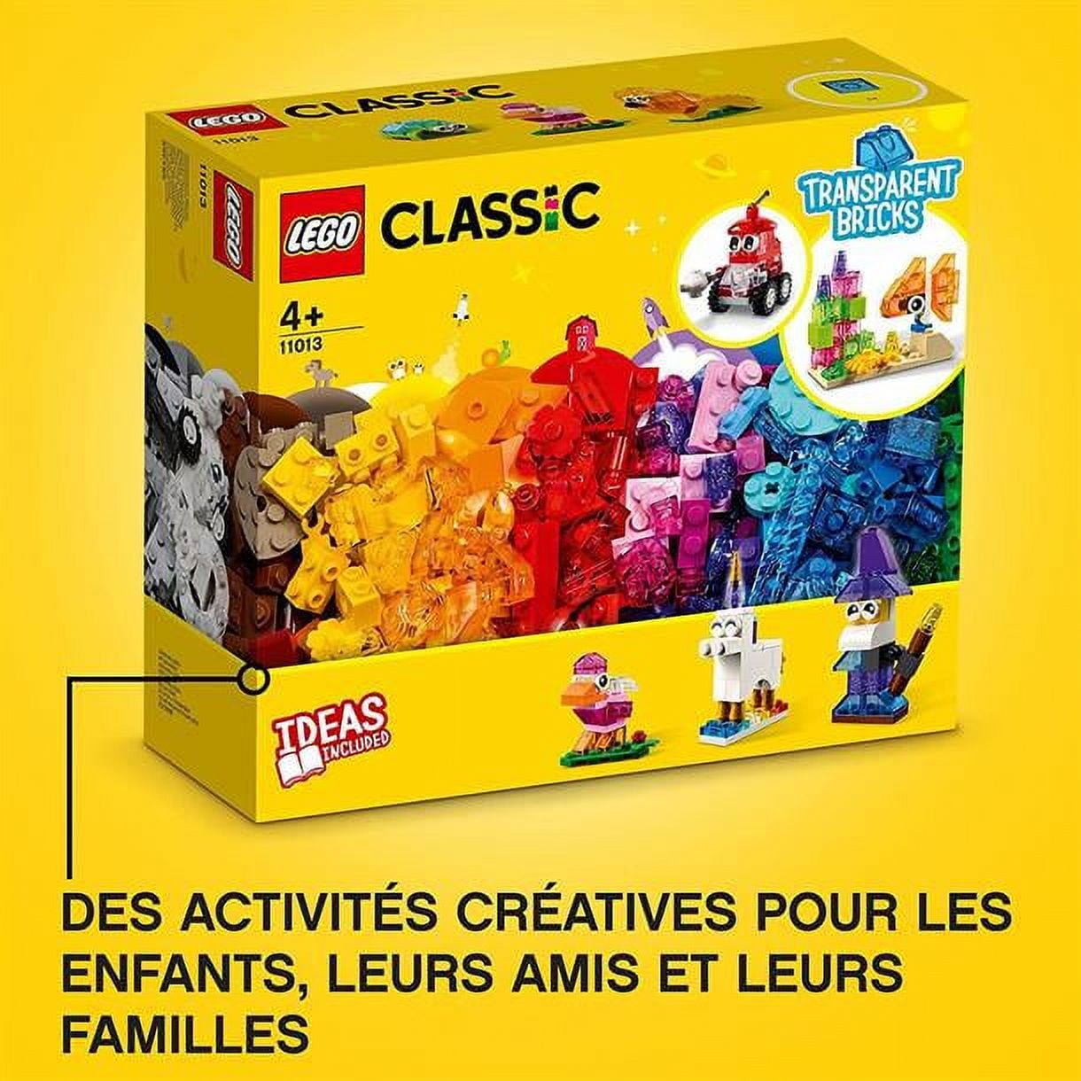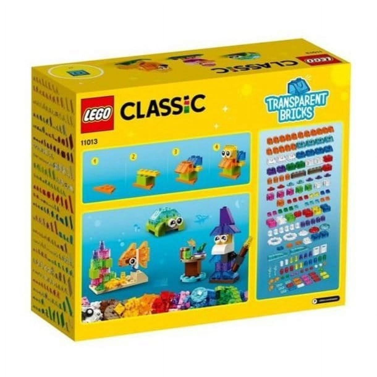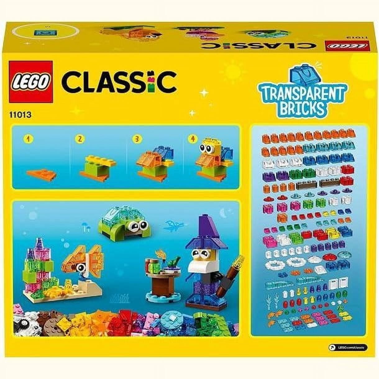 LEGO Classic Creative Transparent Bricks 11013 building set features a dazzling collection of transparent LEGO bricks in every colour, shape and size, plus LEGO bricks, eyes and wheels. Everything kids need for hours of imaginative play. The perfect playset for young model builders aged 4 and up This quality playset contains 8 inspiring model ideas. Includes a toy bird, a lion, a turtle, a robot, a unicorn, a pink bird, a wizard with a potion table and a fish among coral rocks. Each model includes a simple building guide and digital building instructions, so even first-timers will feel the pride and joy of building their own LEGO toys. Helping children develop important life skills, LEGO Classic building sets encourage boys and girls to dream and be creative. Children develop creative and physical skills as they build and play with friends and family. Learning has never been so much fun!