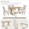 - [Retro Dining Table Set for 6] – The 6-piece dining table set with its retro and elegant appearance will definitively redefine your dining and living space. The tabletop is in a simple rectangular design, and its combination of rigidity and softness makes the artistic sense stronger. Its timeworn planked ash top creates a unique two-tone contrast, while special designed legs and stretcher provide a sturdy foundation.