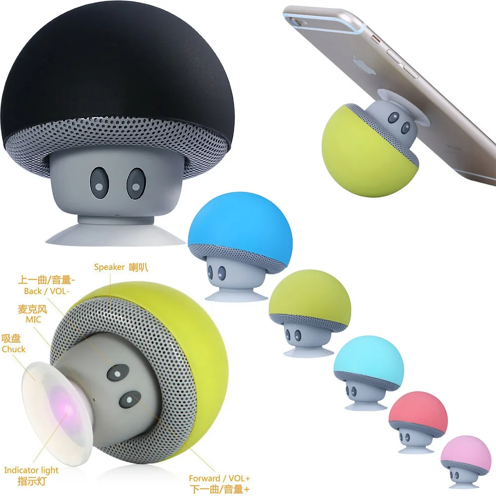 Mini Bluetooth Speakers Cute Mushroom Design Portable Wireless Sound Box For PC Suction Cup Phone Holder Walkman for Girls Pink