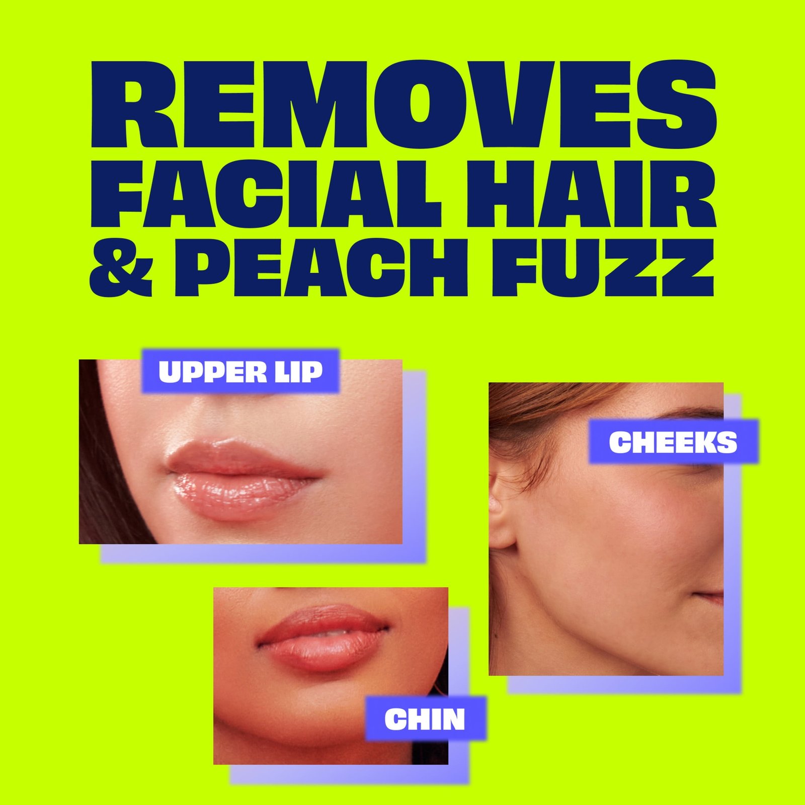 It’s mess-free and easy to use; apply a thick, even layer along upper lip, chin and cheeks; it removes facial hair and fuzz in as little as 5 minutes